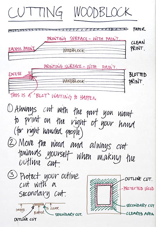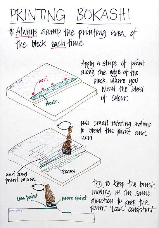 During my teaching of Japanese Woodblock Printing I have a series of boards around the studio explaining various aspects of the process. Most people photograph them with their phones but here are copies of them.