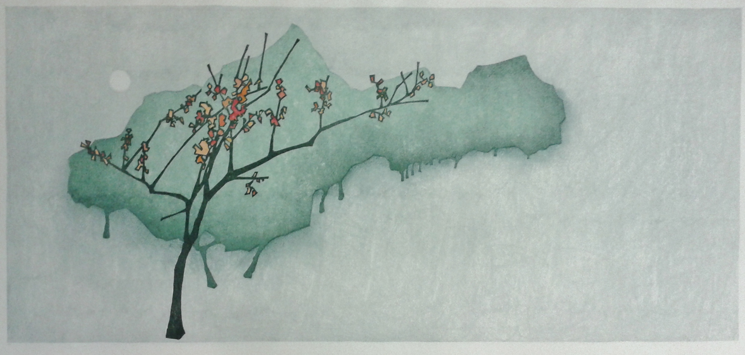 I also hand paint certain parts of prints sometimes and this picture is an example in point. I wanted some of the leaves to have gold on them so I have dropped it in with a brush. I’m OK with that, though purists would argue that a Japanese woodblock should only be printed. Actually, I think the Japanese are great pragmatists: they printed every detail during the Edo period because they were mass printing for a client, not working on personal limited editions. I would hazard a guess they would touch in colour if it was the practical answer.